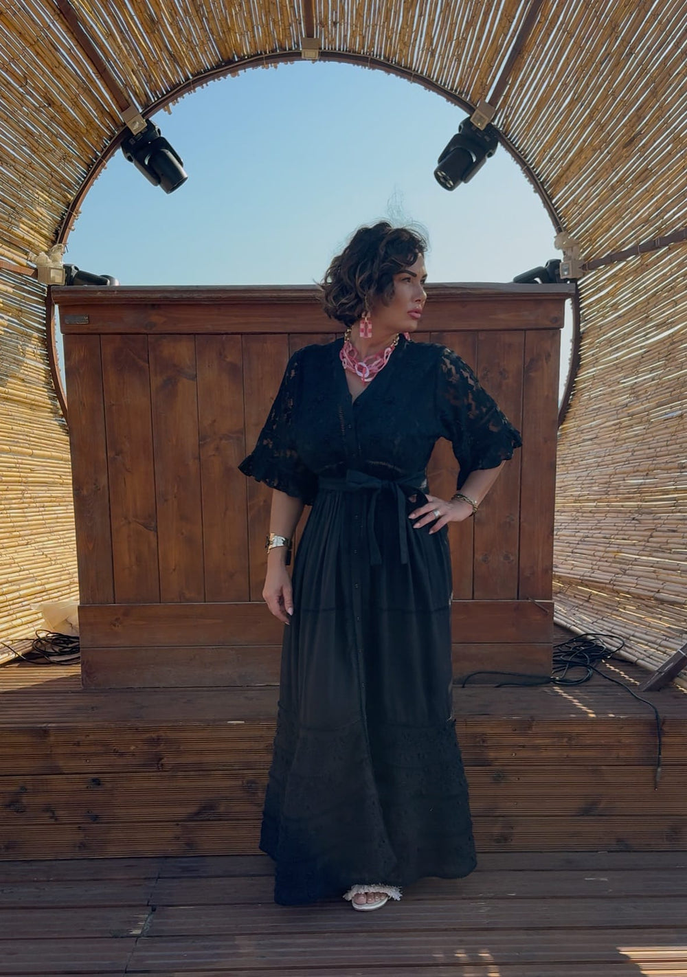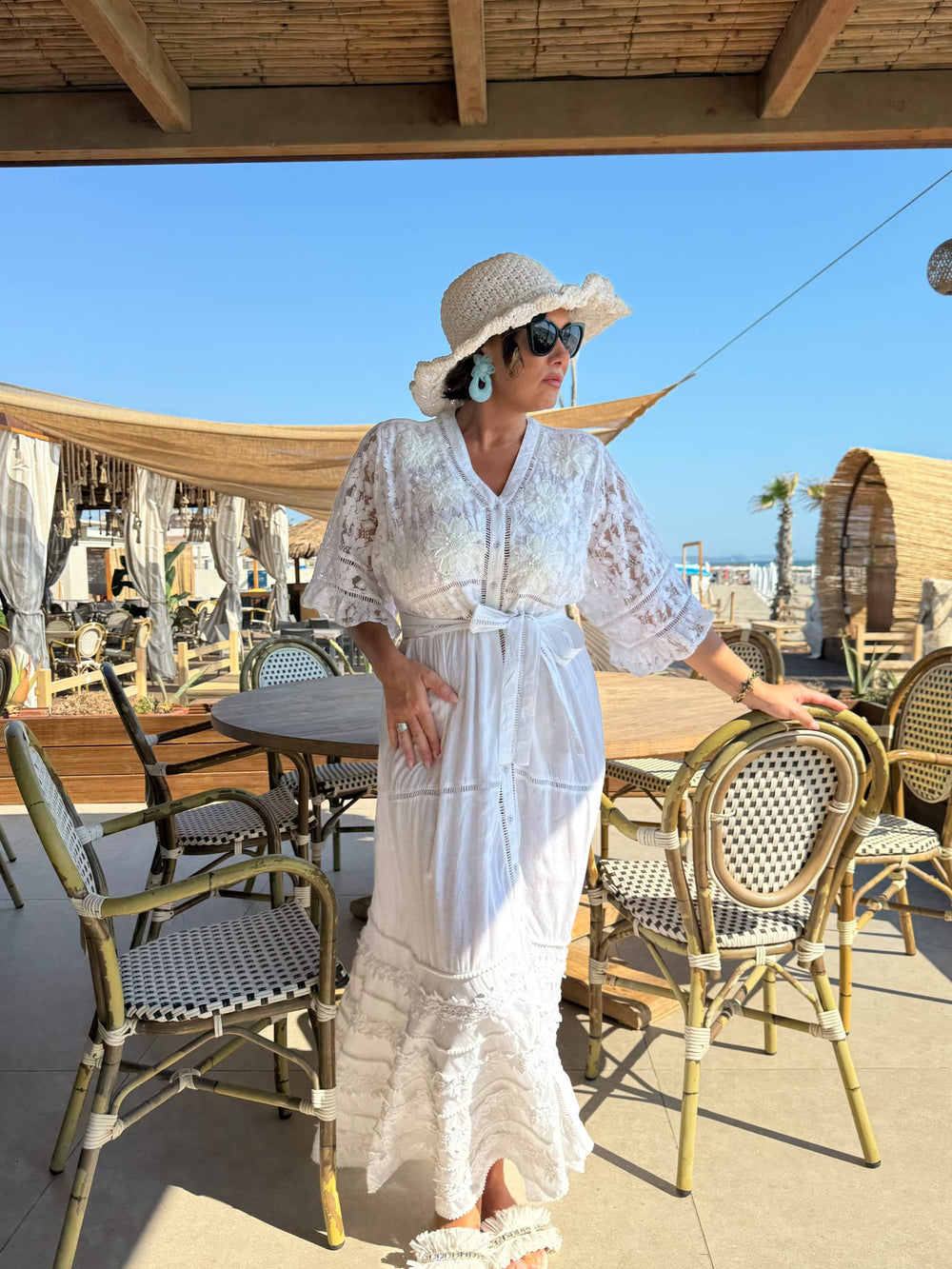 Abito in cotone,manica 3/4,ricami,perline sul davanti rendono quest'abito romantico.