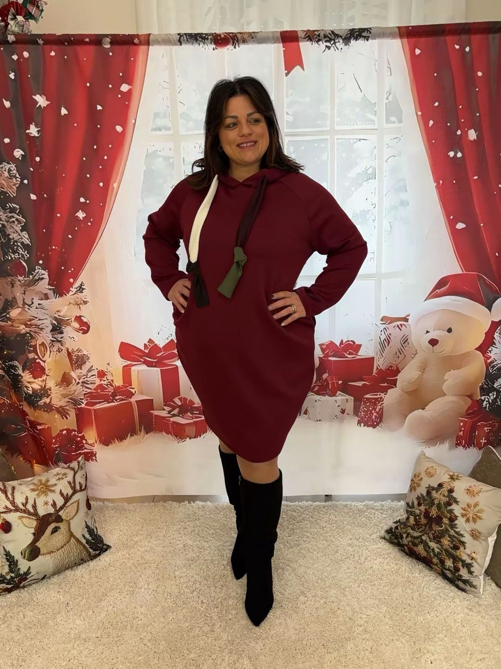 Abito in tessuto tek in poliestere,con cappuccio e laccetti colorati. £E'una tg unice ,veste fino ad una tg 52.