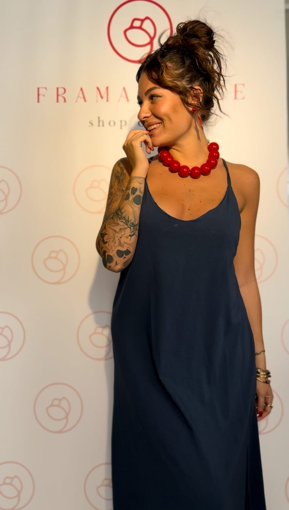 Abito di cotone ,tinta unita ,scollato dietro ad incrocio.Taglia unica .