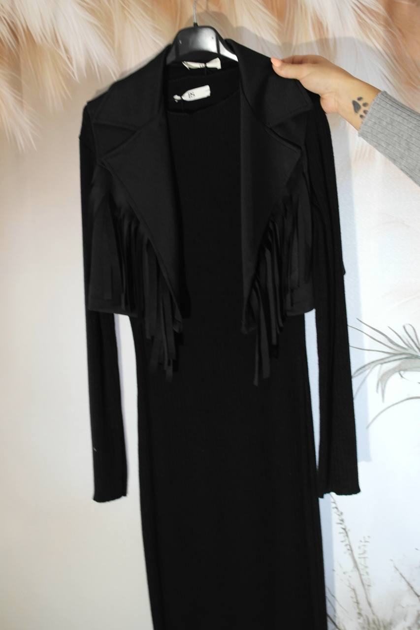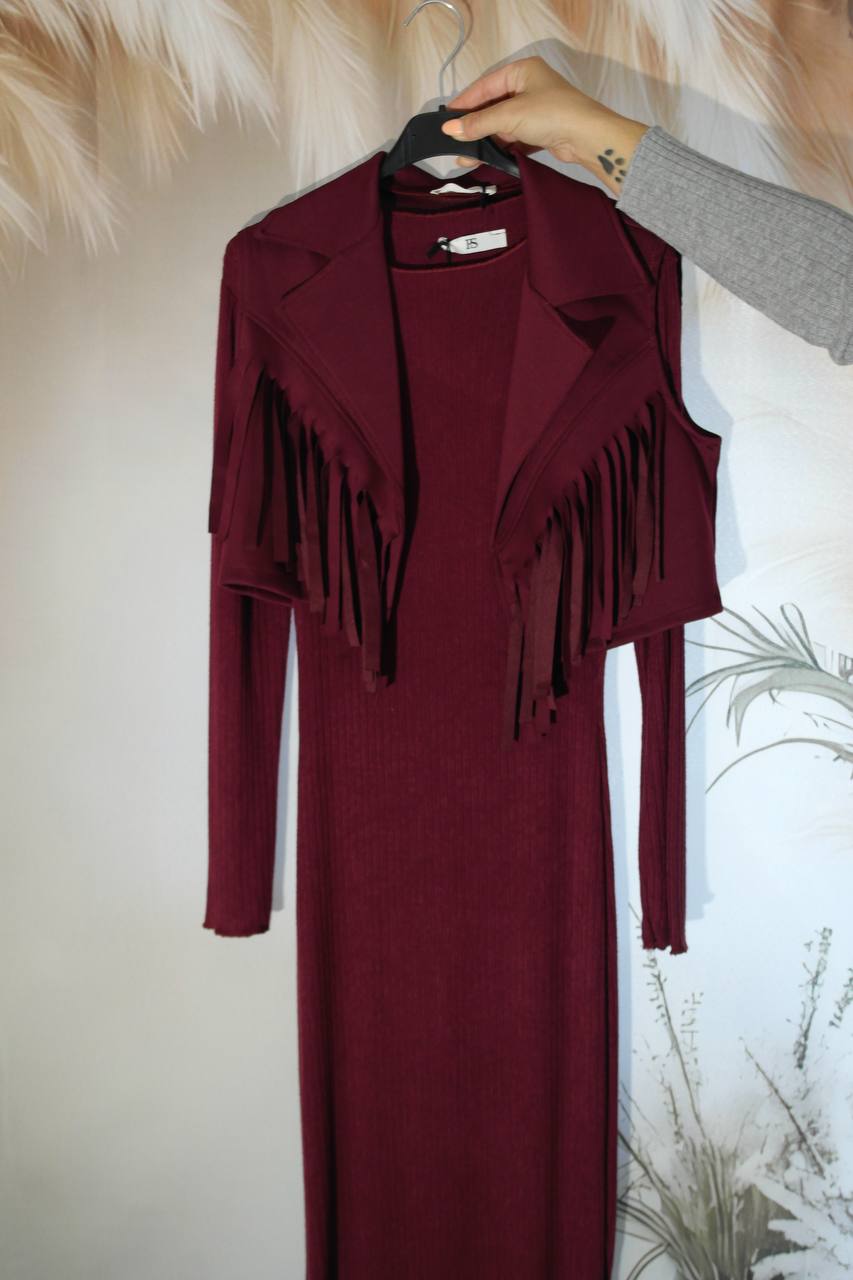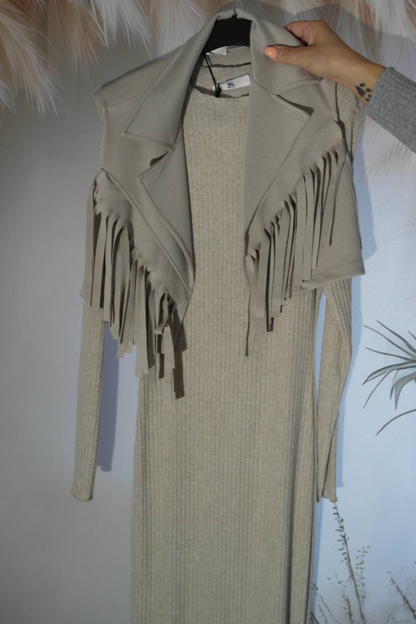 Abito in maglina elasticizzata,in coordinato con il suo gile' frange.disponibilta' varie colorazioni.