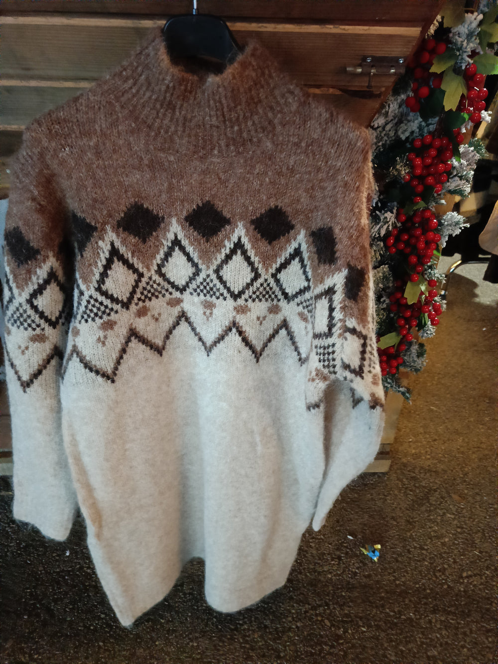 Abito in lana,viscosa tg unica veste fino ad una tg 50,collo alto , manica lunga fantasia astratta
