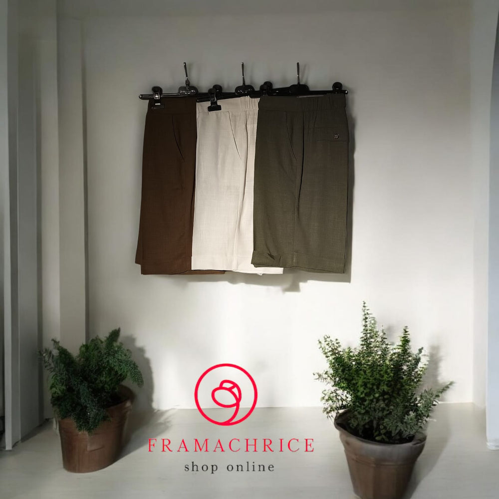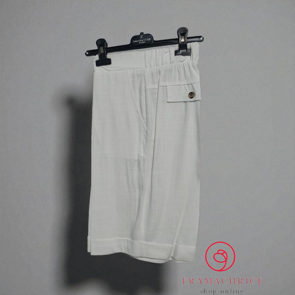Bermuda in cotone ,2 tasche ,elastico in vita e risvoltino sul fondo.