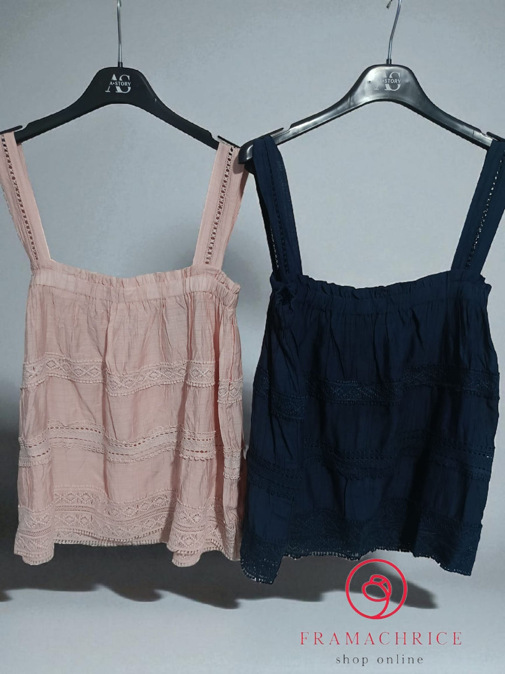 canotta in cotone a bretelle con ricami