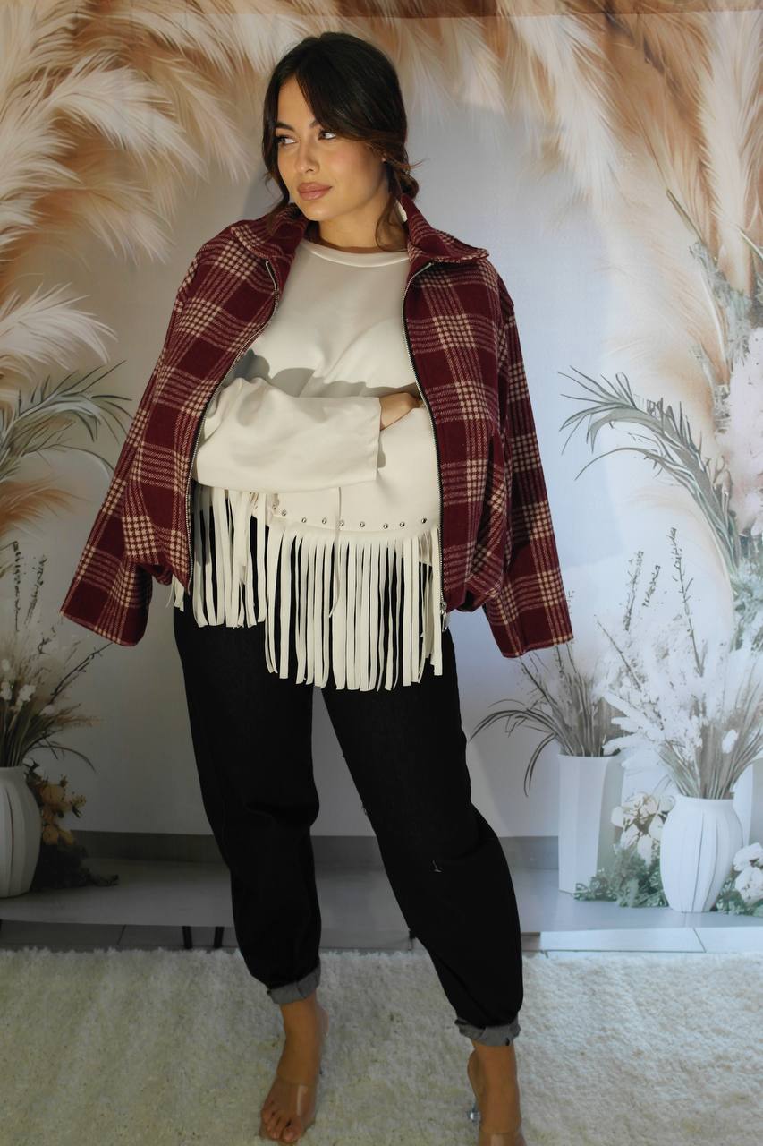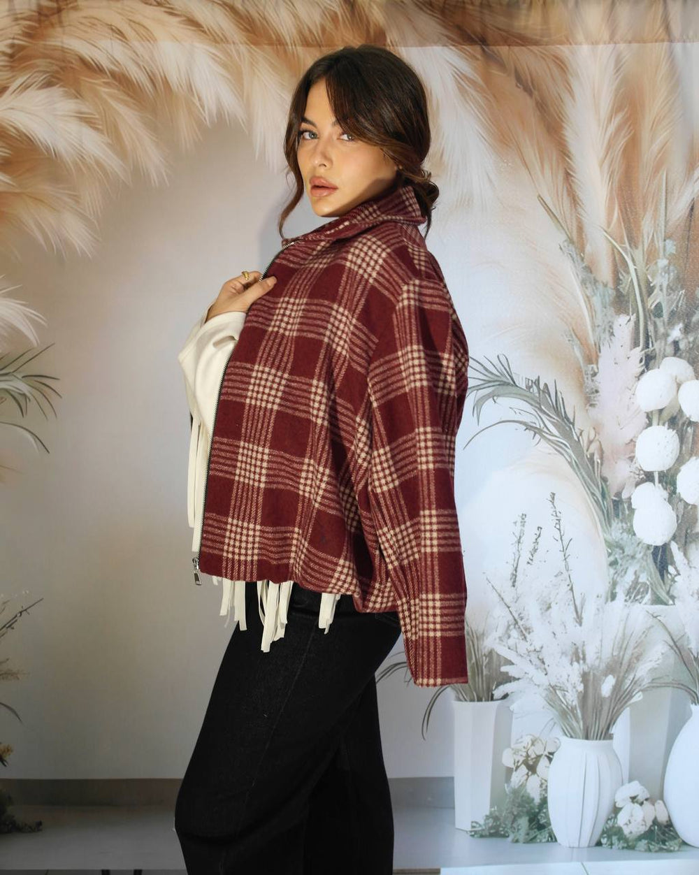 Giacca modello mantella con zip ,disegno quadri a contrasto con il panna,manica a 3/4.... taglia unica veste fino ad una tg 48.