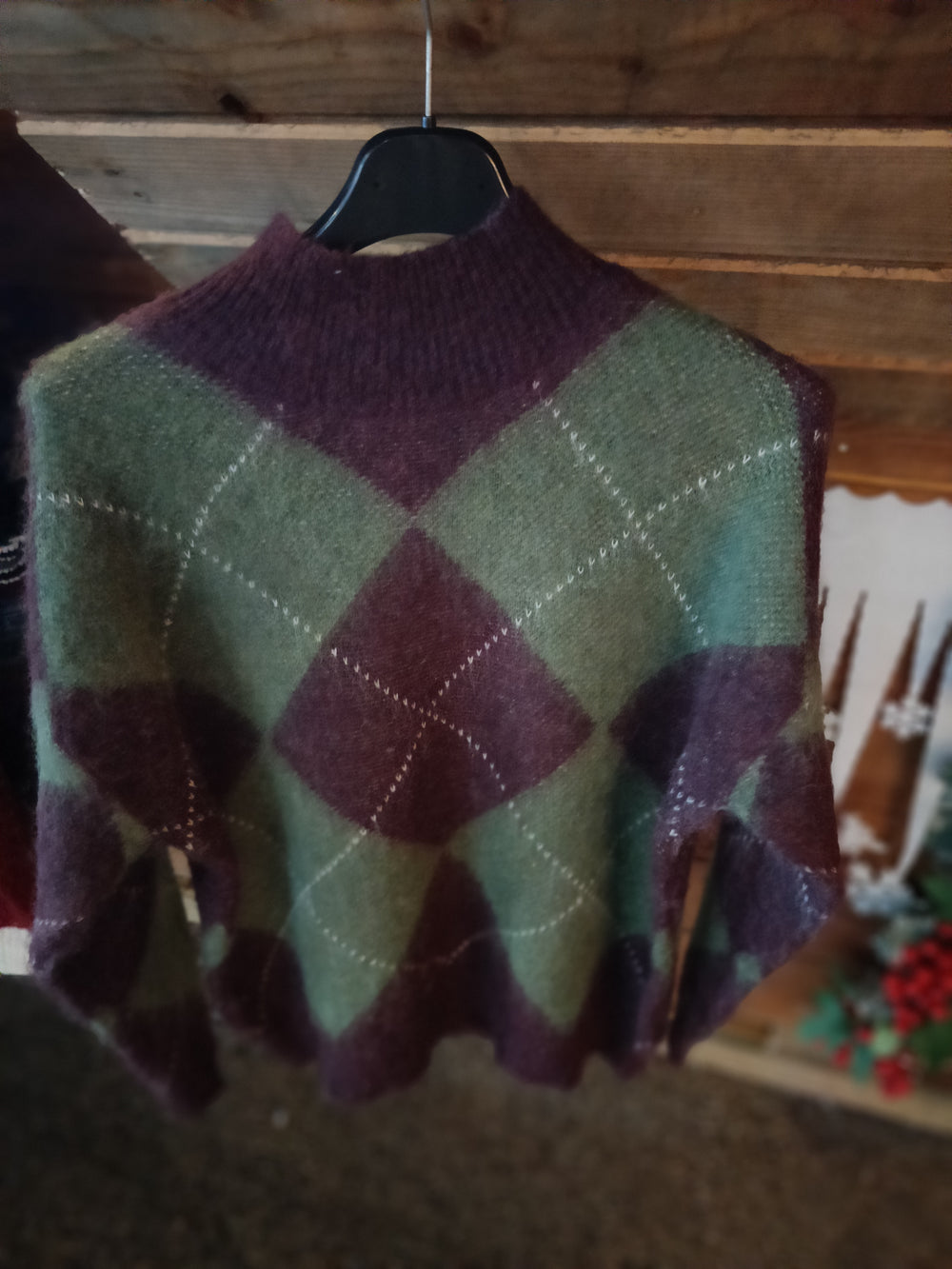 Maglioncino in lana ,viscosa e cashmere fantasia rombi bicolore. Collo alto manica lunga un po' over è una tg unica veste fino ad una tg 50.