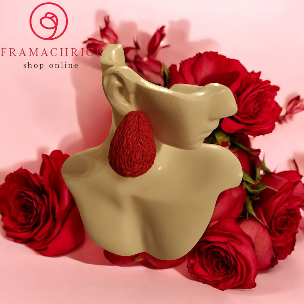 Orecchini in rafia colorata nella versione rossa.gancio in acciaio.