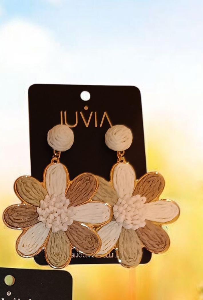 Orecchini in rafia forma margherita tris di colori nella variante beige.Gancio in acciaio