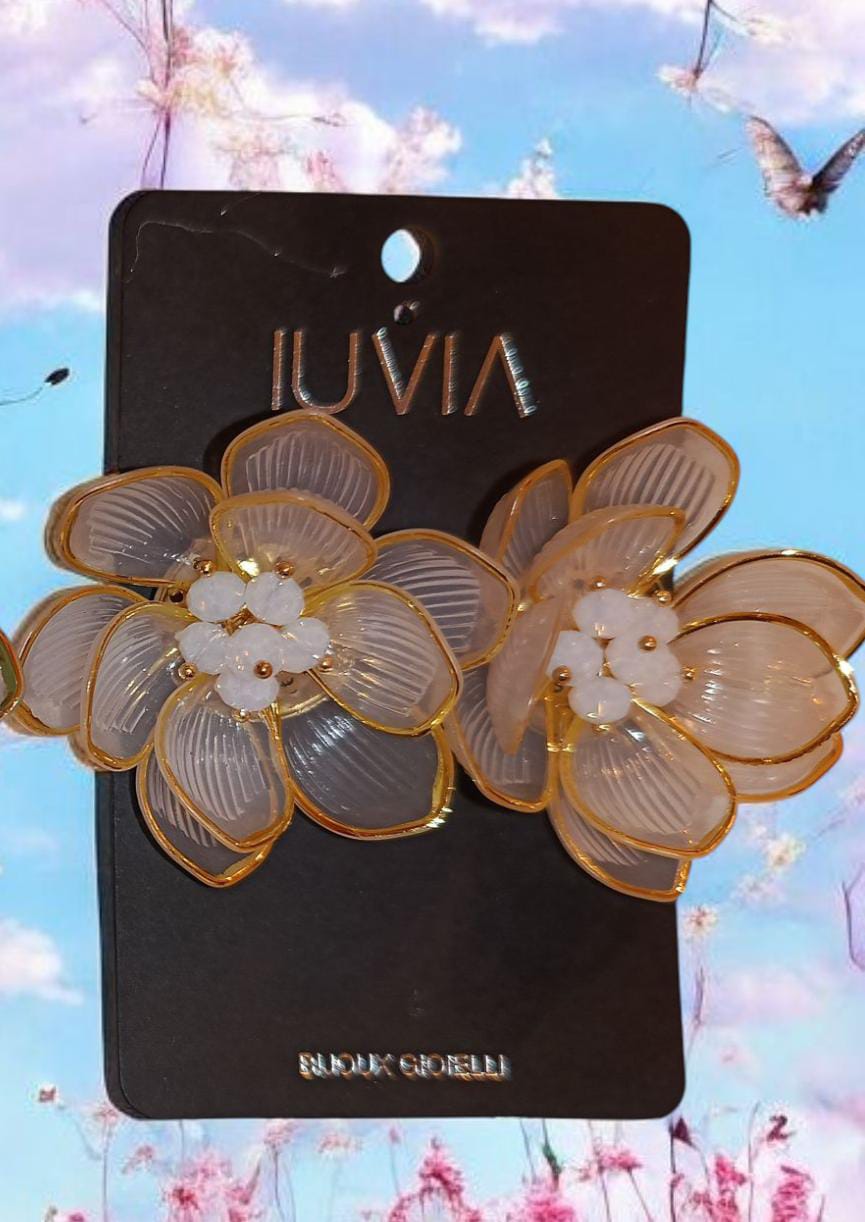 Orecchini in acciaio e plastica dura trasparente nella variante rosa gold